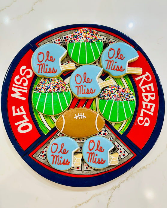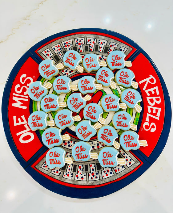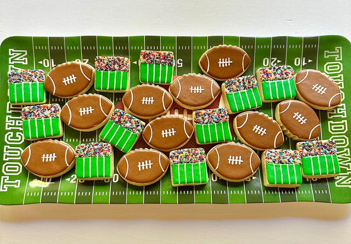 These cookies are not only pretty to look at, they are absolutely delicious. They taste like the BEST old fashioned homemade cookie you remember eating when you were a child. Trust me, these are not your everyday sugar cookies. We've had their beautiful Christmas cookies and now these gorgeous Mardi Gras cookies. If you are looking for something special to decorate your Mardi Gras party table with, get these cookies while they last.